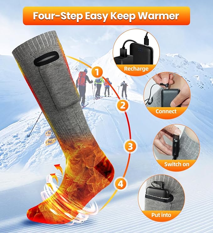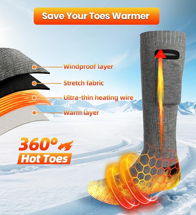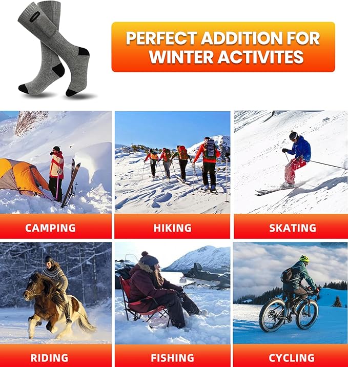 - 【SUITABLE MULTIPLE OCCASIONS】Great for hunting, skiing, fishing, hiking, walking dogs,snowboarding, motorcycle, riding and sporting events.Heated ski socks will be a great choice for cold winter.