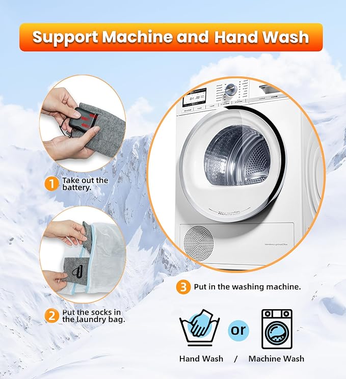 - 【WASHABLE PREMIUM MATERIALS】Thermal Heated Socks for men rechargeable washable made from high-quality cotton fiber, function of absorbent, breathable and elasticity. Fabric is washable, you can choose hand washing or thrown into washing machines.