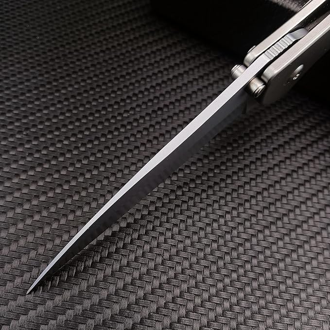 HUAAO Outdoor Flipper Pocket Folding Knife 3" Bead Blast Plain Blade, Stainless Steel Handles Frame Lock,Reversible Pocketclip