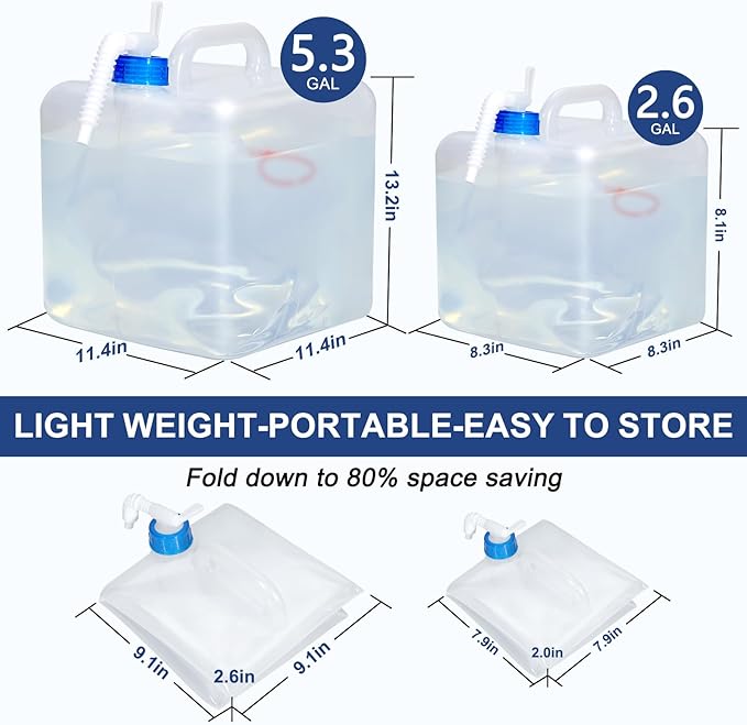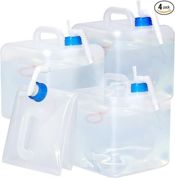 4 Pack Collapsible Water Jug for Camping, Foldable Water Storage Containers with Spigot, BPA Free Water Tank, Large Camping Water Dispenser for Emergency,Survival Kit (5.3 Gallon)