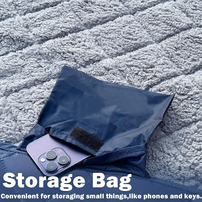 - EASY TO CARRY & EASY STORAGE - We have a waterproof bed blanket storage bag which allows you to fold and store your camping blanket and take it with you in just two minutes. The blanket has a storage pouch for storing small items such as keys and mobile phones that can easily be dropped when camping, and this pouch is located underneath the blanket for aesthetic appeal and security.