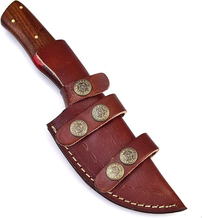 - Beautiful Damascus Steel Outdoor Camping Bushcraft Knife with Sheath Horizontal and vertical carry
