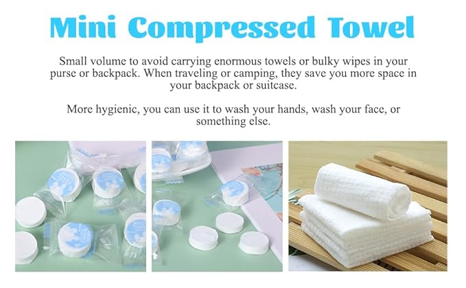- 4-Easy to Use - Simply add water to the compressed towel and the tablet will expand into a full-sized towel. This makes them perfect for on-the-go situations where carrying regular towels is impractical.