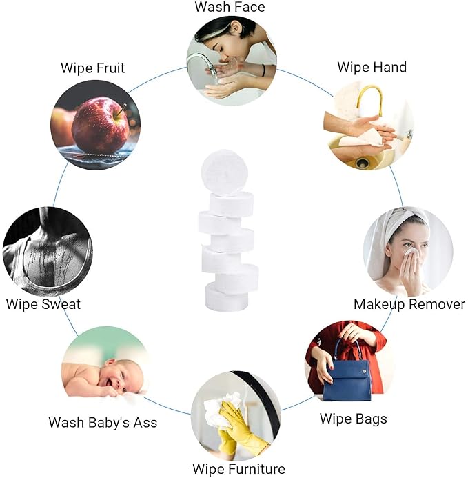 - 2-Versatile Use - These towel tablets can also be used as toilet paper tablets. They are an essential part of your camping gear and a must-have for any outdoor adventure.