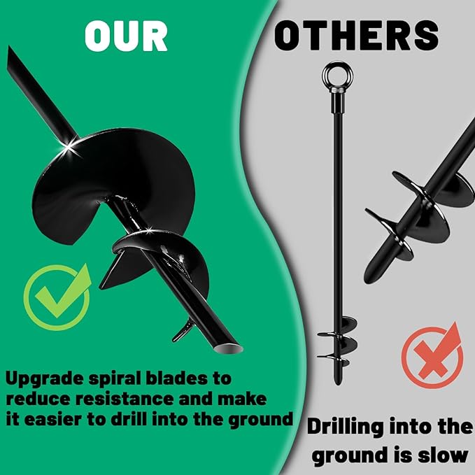 - 【Upgrade Spiral Blade】 The upgraded 2.95 "wide spiral diameter of our ground anchor has stronger grip and stability, which helps you to better fix outdoor tools such as tents. Small spiral blades reduce resistance and improve your drilling efficiency. The 18-inch long ground anchor is long enough to be inserted deeper into the ground and remain stable under strong winds.