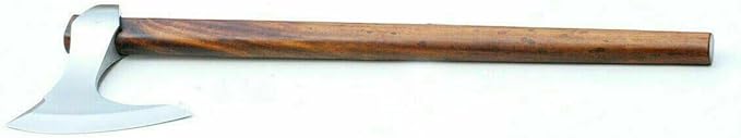 - [Product Material] These Viking Hunter axes and hatchets high quality 1095 carbon steel perfect hold and stable axe the axe handle is made from one piece of quality aged Olive wood. The handle features thick harness wrap jute on handle. The Viking-style axe is designed beautifully for both exhibit and functionality. Extra shine coating for a beautiful, smooth and attractive look medieval gifts for men.