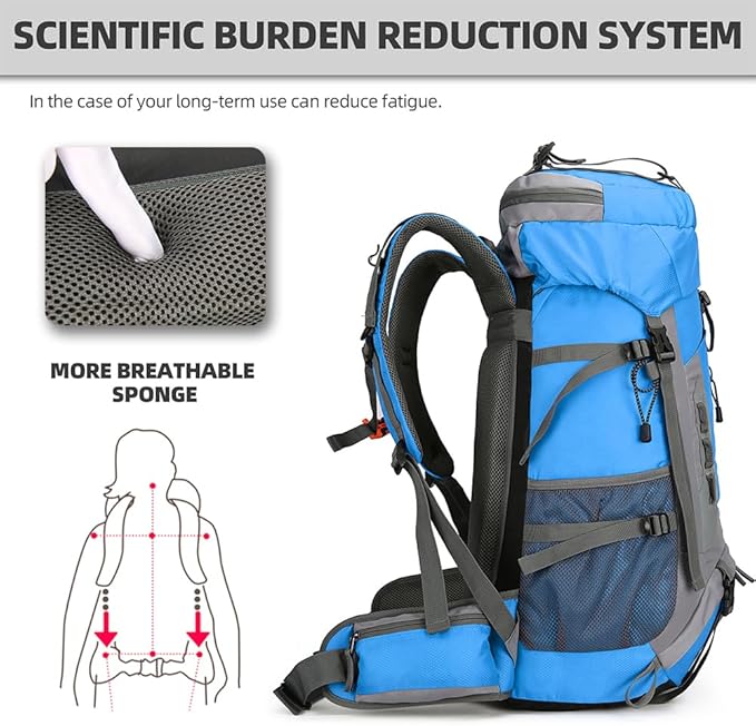- 【Large Capacity】- With a spacious 60 liter capacity, this lightweight hiking backpack is designed to accommodate all your outdoor essentials. The multiple pockets and compartments provide organized storage for your gear, clothing and shoes. The 60l hiking backpack also comes with a rain cover to keep your belongings safe and dry even inthe rain.