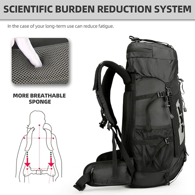 - 【Large Capacity】- With a spacious 60 liter capacity, this lightweight hiking backpack is designed to accommodate all your outdoor essentials. The multiple pockets and compartments provide organized storage for your gear, clothing and shoes. The 60l hiking backpack also comes with a rain cover to keep your belongings safe and dry even inthe rain.