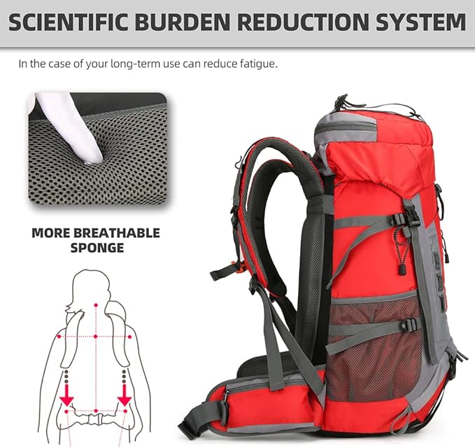 - 【Large Capacity】- With a spacious 60 liter capacity, this lightweight hiking backpack is designed to accommodate all your outdoor essentials. The multiple pockets and compartments provide organized storage for your gear, clothing and shoes. The 60l hiking backpack also comes with a rain cover to keep your belongings safe and dry even inthe rain.