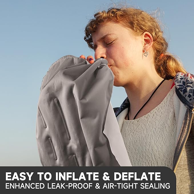 - 【EASY TO INFLATE & DEFLATE】 With the unique valve design, this camp pillow can be inflated with 3 to 5 breaths, and deflated in a few seconds. Customize your comfort with the adjustable inflation feature. Whether you prefer a soft or firm pillow, simply adjust the air levels to suit your sleeping preferences.