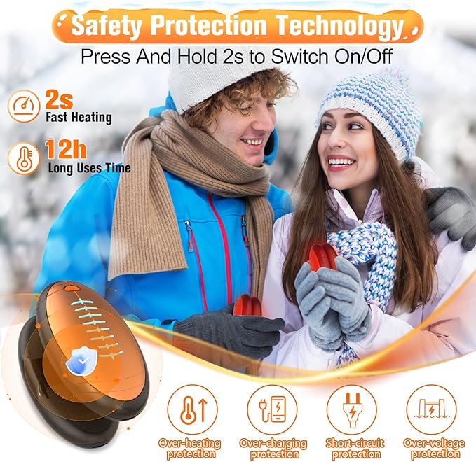 - 🔥【Safety and Certified Reliability Hand Warmer】Our electric hand warmer is expertly crafted from premium aluminum and ABS materials, bearing certifications from UL, CE, and FCC. It is designed with advanced safety technology which is intelligent temperature control chip that could releases warmth evenly and stably. providing safe and reliable protection for you family.Safe to be used by the elderly or children