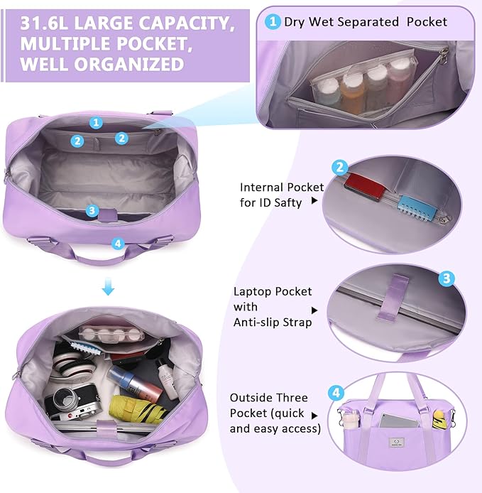 Gym bag for Women, Travel Duffel Bags with Trolley Sleeve, Weekender Overnight Bag, Carry on Tote Bag Dance Bag