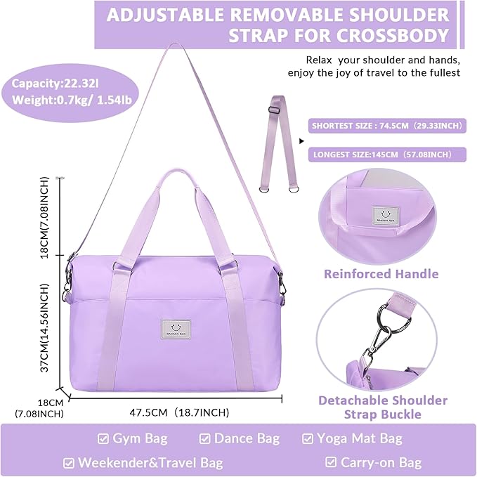- MULTIPURPOSE, ONE IS ALL:MUSEVOS gym bag perfect suit for traveling or work or campus just for daily use,the adjustable removable shoulder strap for across body help you to relax shoulder and hands,it can be a nice weekender bag/travel bag/overnight bag/yoga mat bag/dance bag/sports gym bag/hospital bag,anywhere you need will fit, it will be your good companion.