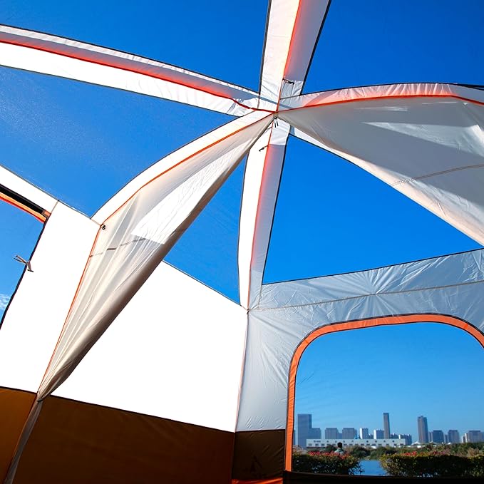 - Unique design:3 doors 3 Windows with mesh,divided into two rooms by separation curtain.and more comfortable.There are 2 rooms with 8 top corner hooks and a middle hook.