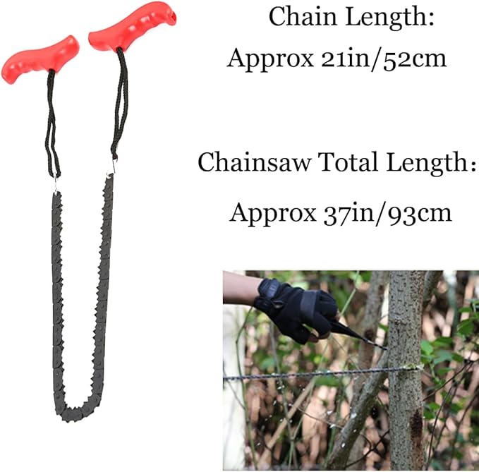 - Efficient Work: This 21inch survival hand saw with 92 sharp carbon steel serrated blades, this 21" chainsaw can rip through from small branches to large tree limbs. And it can also reduce bindings and hang ups.