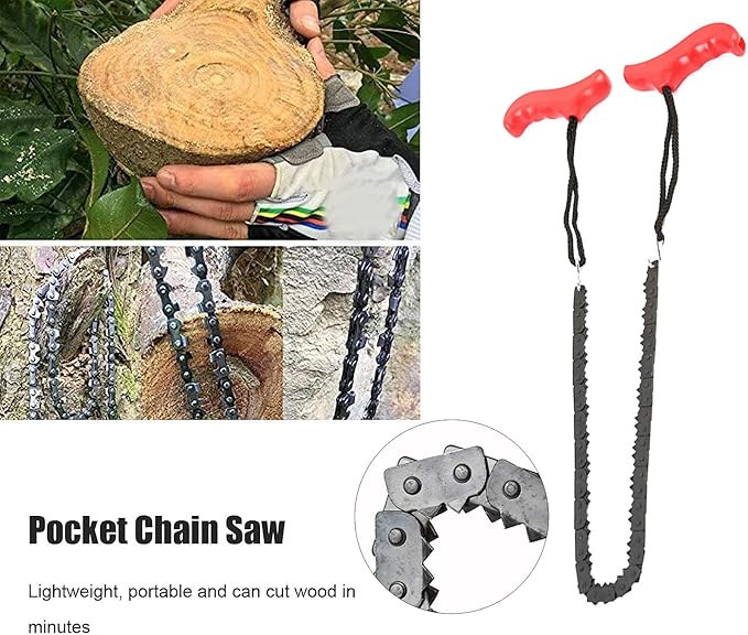 - Lightweight Rope Chainsaw: The sportsman pocket chain saw has a folding design and can be placed in a pocket, folding saw for backpacking, saw is lightweight and have compact size. This emergency survival kit chainsaw wire makes easy to pack and carry with in nylon bag. It can also be used as a Father's Day gift.