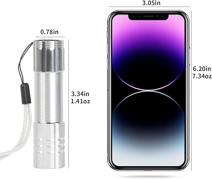 - Easy to Carry: These small torchs are 3.3 inches long and weigh 1.4 oz. With the extended lanyard, it is suitable for carrying it out easily size & lightweight, easily tucked into a pocket or purse car glove box, tool box, bedside table, or purse. It is suitable for a variety of occasions such as walking, camping, exploring, dog walking, partying, or emergency.