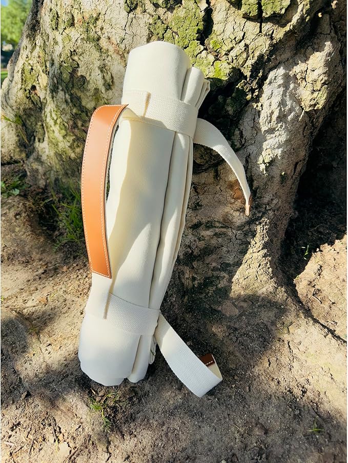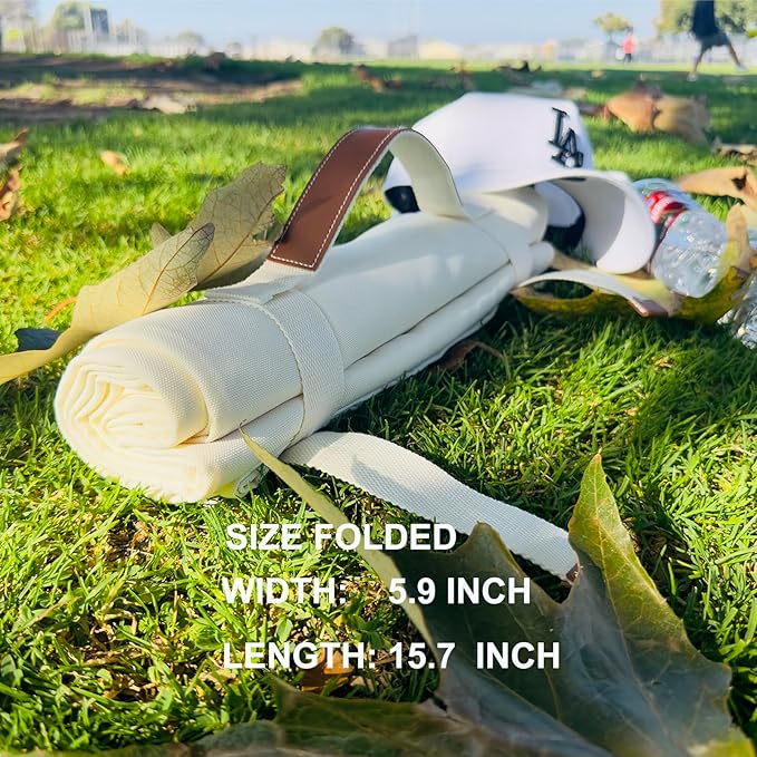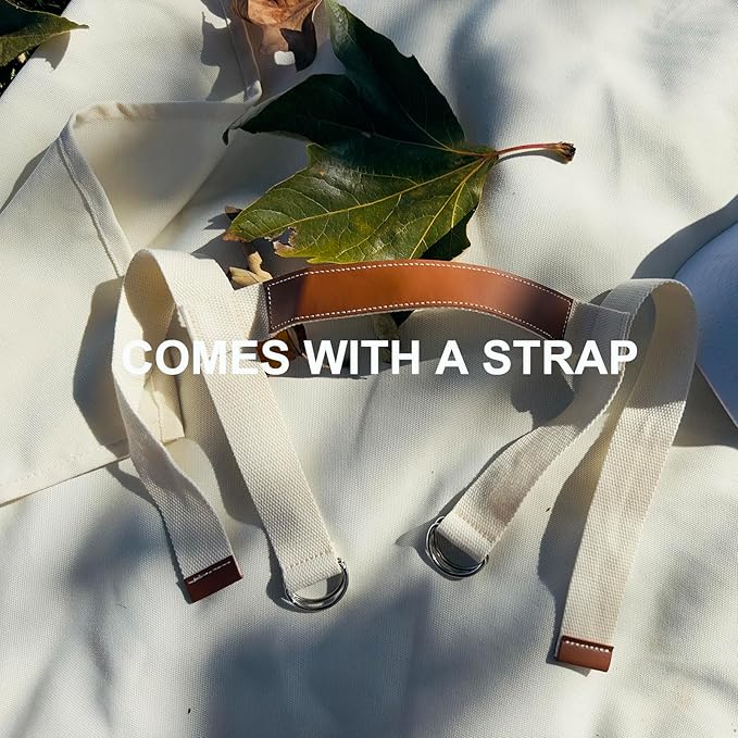 - It comes with one white canvas picnic blanket,one faux leather handle and webbing strap,one storage tote bag