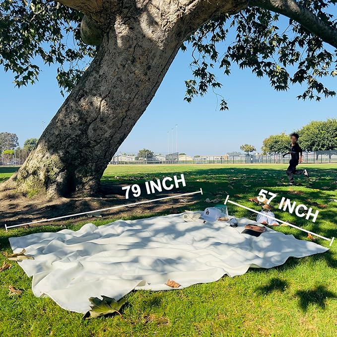 57”x 79”,Extra Large White Picnic Blanket Water Resistant,Outdoor Blanket,Park Beach Blanket,Camping Mat Light Weight Sturdy Canvas