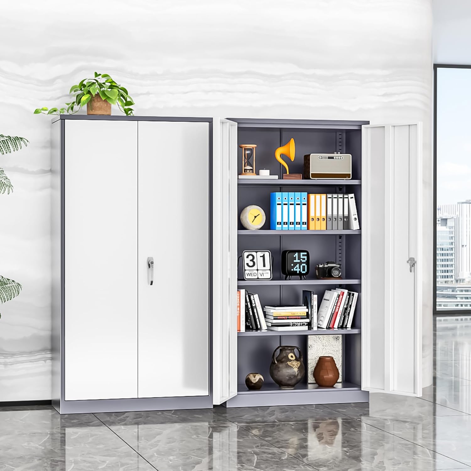 INTERGREAT Storage Cabinet, 72” Steel Locking Closet with Doors and 4 Adjustable Shelves, Tool Unit for Home Office, Garage & Tall Lockable File Cabinet, Grey White.