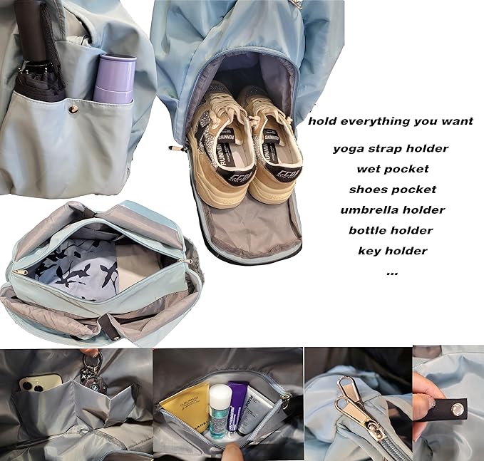 Gym bag with yoga mat holder Gym Bag for Women yoga bag with Shoes Compartment and Wet Dry Storage Pockets with Adjustable yoga mat holder (blue)