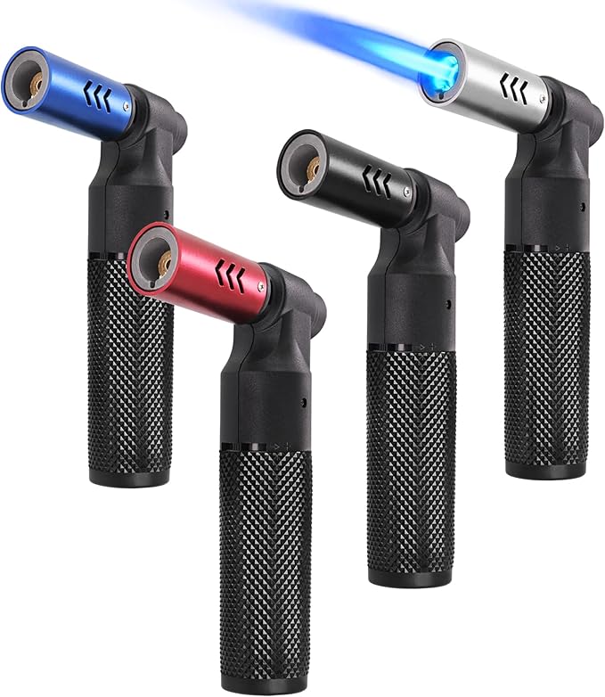 Luxgaze 4 Pack Butane Torch Lighters Refillable Jet Flame Portable Butane Torch Mini Refillable Windproof Lighters for Camping Baking Culinary Soldering Cooking Welding BBQ Grill(Gas not Included)