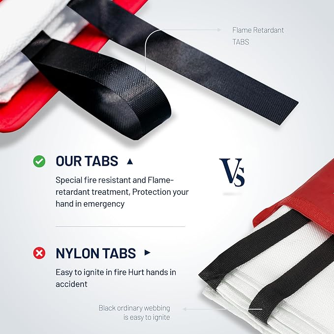 - 𝗦𝗮𝗳𝗲𝘁𝘆 𝗮𝗻𝗱 𝗔𝗱𝘃𝗮𝗻𝘁𝗮𝗴𝗲𝘀: Complies with two established safety standards for fire blankets, CE (EN 1896:1997) and SGS (EN 1896:2019). Unlike regular fire extinguishers, it's easy to carry and store, convenient to use, capable of quickly and easily extinguishing small fires, and suppressing fire spreading.