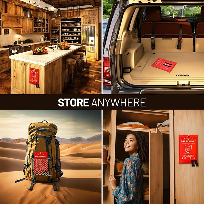 - 𝗛𝗼𝗺𝗲 𝗘𝗺𝗲𝗿𝗴𝗲𝗻𝗰𝘆 𝗙𝗶𝗿𝗲 𝗕𝗹𝗮𝗻𝗸𝗲𝘁: Designed as an emergency home safety device for peace of mind. Keep these fire blankets in the home kitchen, backyard, fireplace, grill, office, camping, or as part of your vehicle’s survival kit for comprehensive protection.Perfect as a great gift for your friends and family.