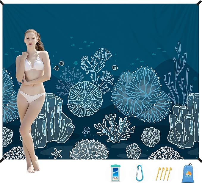 - 🌊BIG BEACH BLANKET:Durable and fast drying,can also be used as a canopy,sunshade,tent,toddler crawling mat,picnic mat,first aid mat,better professional fabric sewing without irritating the skin,providing you a good sense of use.