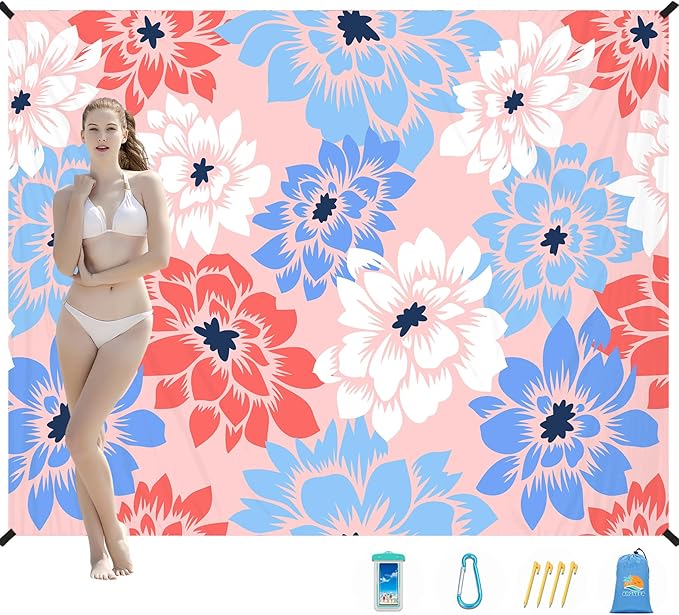- 🌊BIG BEACH BLANKET:Durable and fast drying,can also be used as a canopy,sunshade,tent,toddler crawling mat,picnic mat,first aid mat,better professional fabric sewing without irritating the skin,providing you a good sense of use.