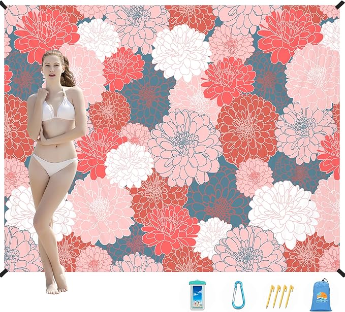 - 🛒PACKABLE SAND RESISTANT BEACH BLANKET MAT:The package includes 1 beach blanket,4 ground stakes for windproof,1 carabine for carry.You can enjoy a wonderful outdoor time with your family.If you have any questions,please don't hesitate to contact us.