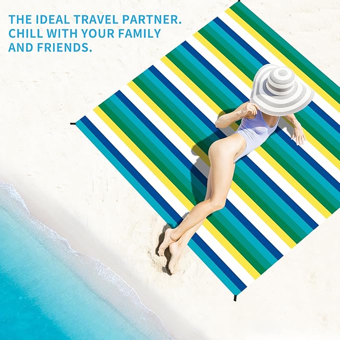 - ⛱ Beach Blanket Oversized:Tear-resistance,dry quick.Also can be used as a rainshed,sunshade,tent,toddler crawl,emergency mat etc.Feel comfortable to lying down.Won't irritate your skin and fine stitches.