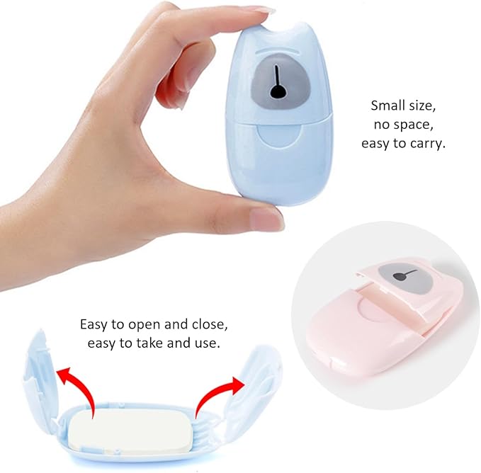 - Easy to Use: The outer box of the Mini soap sheets adopts bayonet design, which is simple to open and close. Just take out one piece and gently rub it with water to melt it. It has many foam, which can wash away dust, grease and stains.