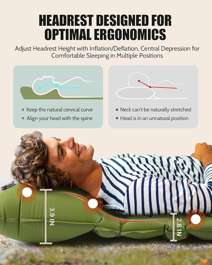 - 【Versatile for Every Expedition】 Whether you're camping under the stars, hiking through nature's wonders, embarking on a road trip, or hosting impromptu guests, Kimevan's Inflatable Camping Pad is your perfect companion. Its ergonomic headrest and thoughtful design ensure a cozy sleep wherever your escapades take you."