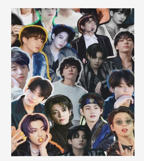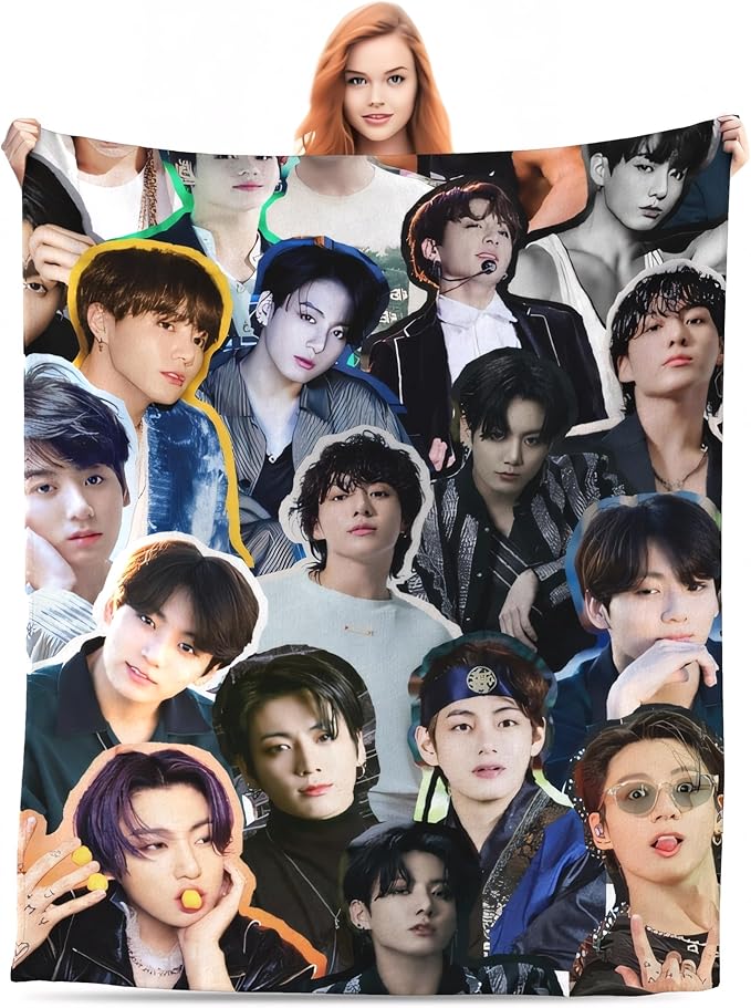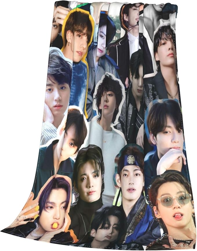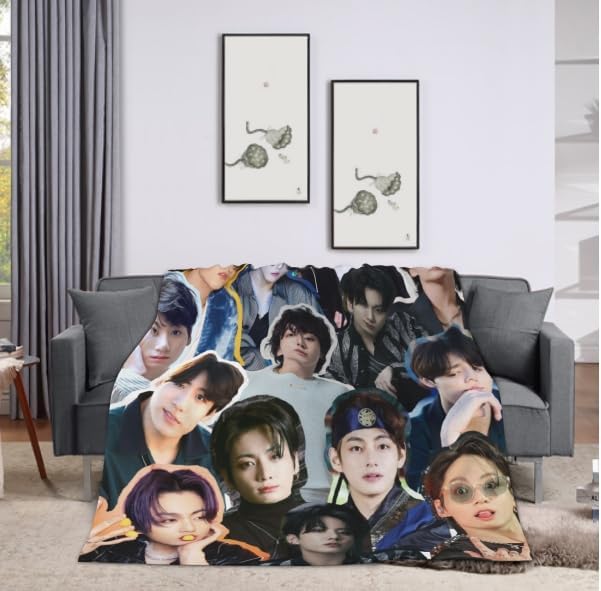 Jungkook Blanket Jeon Jung Kook Soft and Comfortable Warm Fleece Throw Full Picture of Idol Group Blankets 50"X40" Beach Blankets Gift for Dorm Room Decor Sofa Bed Camping Travel