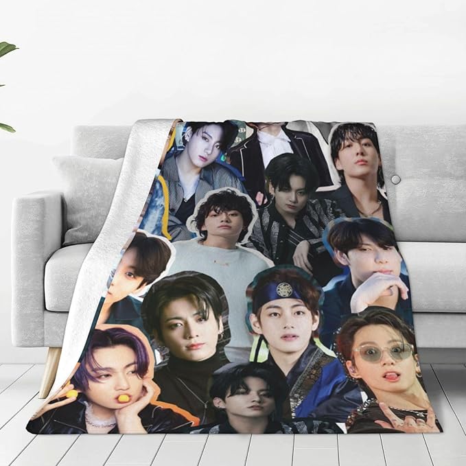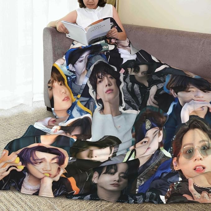 Jung Kook Blanket 60"X80" Soft and Comfortable Warm Fleece Throw Full Picture of Idol Group Blankets Yoga Blankets Beach Blanket Picnic Blankets Gift for Dorm Room Decor Sofa Bed Camping Travel