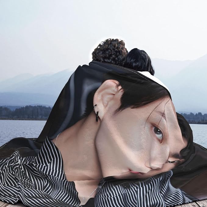 Jungkook Blanket Jeon Jung Kook Soft and Comfortable Warm Fleece Throw Full Picture of Idol Group Blankets 50"X60" Beach Blankets Gift for Dorm Room Decor Sofa Bed Camping Travel