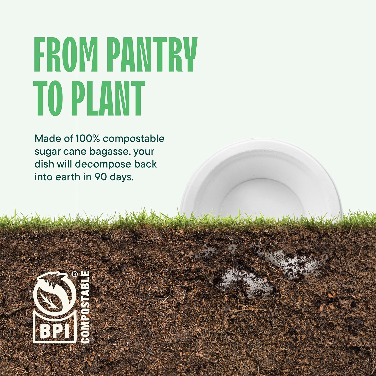 - 100% Sugarcane Fiber: The Twelve Ounce Bowls are Made of 100% Sugarcane Fiber, a Sustainable, Renewable, and Biodegradable Material. A great Alternative to Traditional Paper or Plastic, the Disposable Bowl Offers the same Sturdy Function and Easy Cleanup, Yet it’s Completely Tree- and Plastic-free.