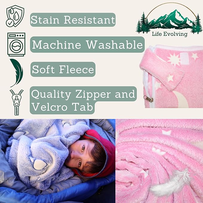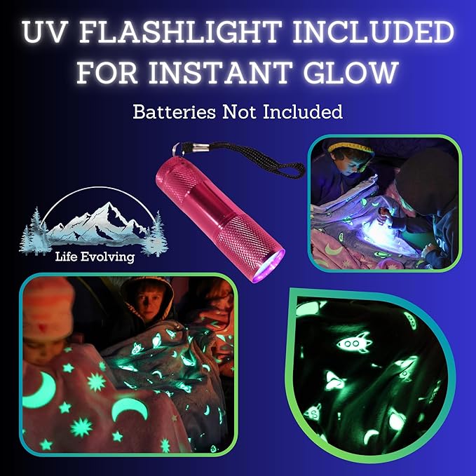 - UV Flashlight To Give Your Adventure An Instant Glow Up: Illuminate the night with the UV flashlight that instantly brings the glow of this travel sleep sack to life. Watch as the designs light up, turning your stay away from home into a magical experience for the whole family. *Batteries not included*