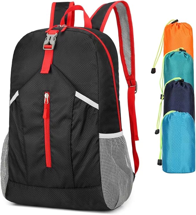 - MULTI-PURPOSE BACKPACK: This foldable backpack is versatile, suitable for various outdoor activities such as travel, camping, hiking, day trips, and even shopping. It offers ample storage space with its main zipper pocket, front zipper pocket, and two mesh side pockets. Ideal for international travel as well.