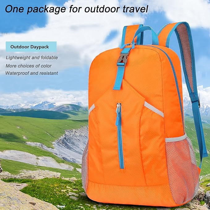 - MULTI-PURPOSE BACKPACK: This foldable backpack is versatile, suitable for various outdoor activities such as travel, camping, hiking, day trips, and even shopping. It offers ample storage space with its main zipper pocket, front zipper pocket, and two mesh side pockets. Ideal for international travel as well.