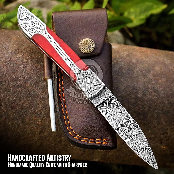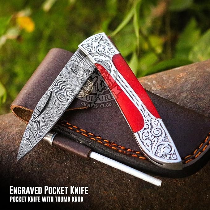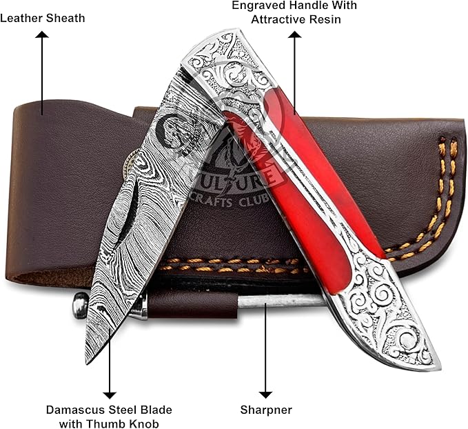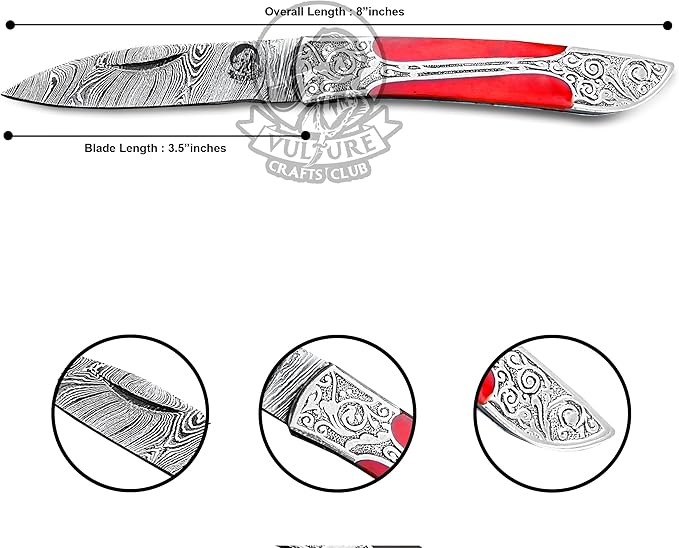- Model Name : Vulture Eye ,Damascus Pocket Knife with Leather sheath