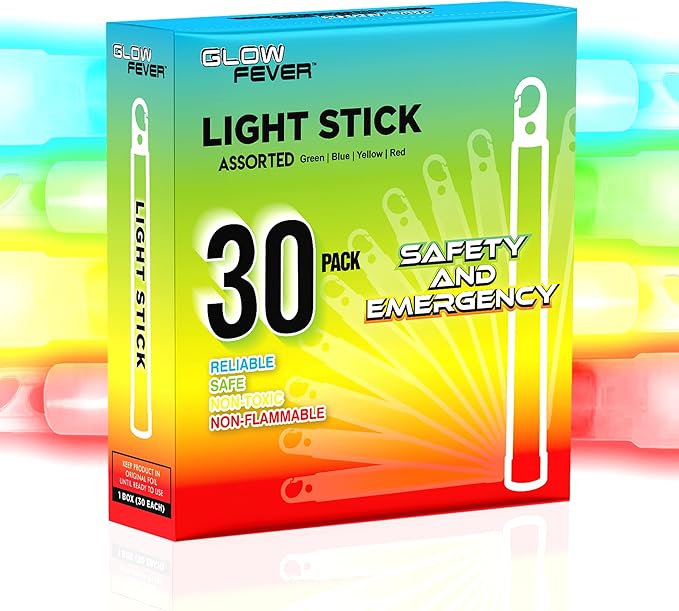 Glow Fever Emergency Safety Military Grade 6'' Lightsticks, Light Up Ultra Bright Glow Sticks with 12 Hours Duration. for Hiking Party Camping Blackouts Hurricane Shelter Survival Kit (Mixed, 30PCS)