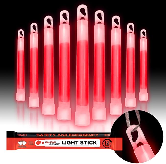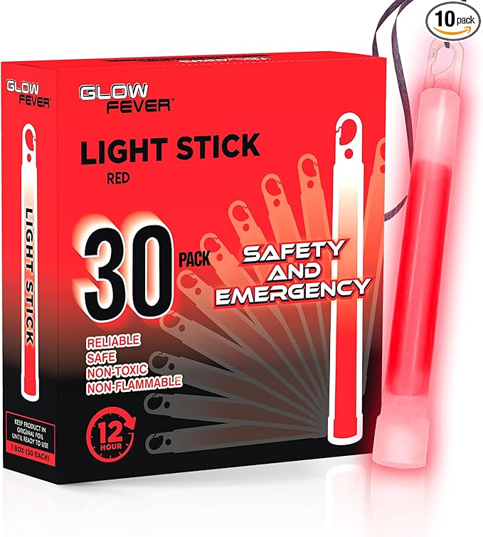 Glow Fever Emergency Safety Military Grade 6'' Lightsticks, Light Up Ultra Bright Glow Sticks with 12 Hours Duration. for Hiking Party Camping Blackouts Hurricane Shelter Survival Kit (Red, 30PCS)