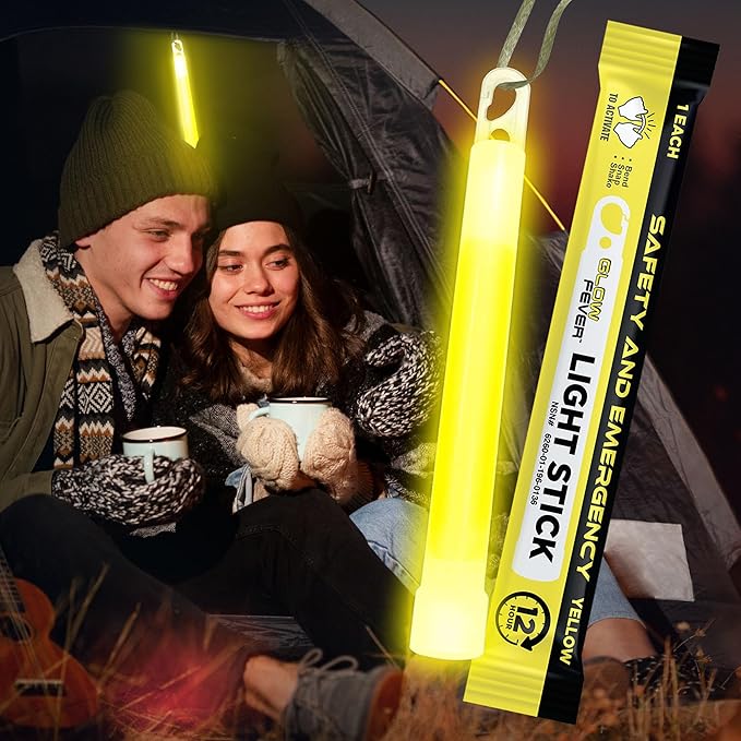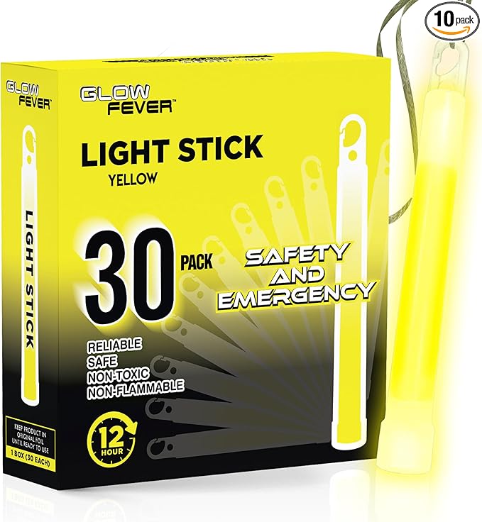 Glow Fever Emergency Safety Military Grade Glow Sticks, 30pcs 6'' Lightsticks, Light Up Ultra Bright with 12 Hours Duration. for Hiking Party Camping Blackouts Hurricane Shelter Survival Kit (Yellow)