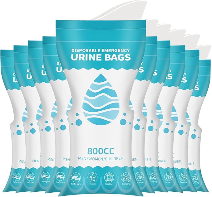 10 Pack Disposable Urine Bags, 800ML Pee Bags for Travel for Men Women, Disposable Urinal Bags and Unisex Urinal Bag, Vomit Bags, Pee Bag for Traffic Jams, Camping, Pregnant, Patient