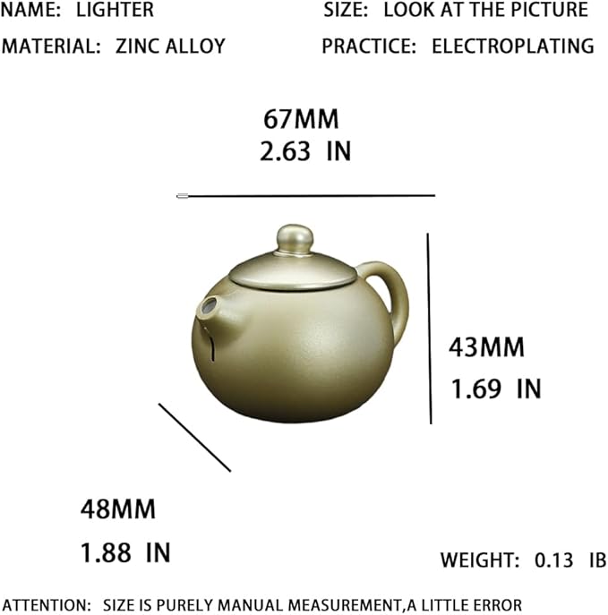 - [High-Quality Material] This teapot lighter is made of high-quality zinc alloy and high-temperature-resistant ceramic plates, exquisite vacuum plating process, integrated design, and smooth surface. Metal body, exquisite and compact, comfortable to hold, sturdy and durable.
