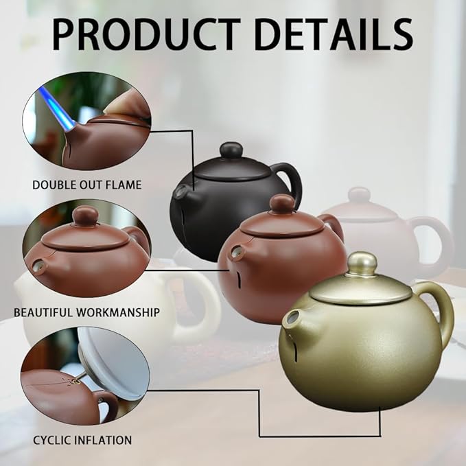 - [High-Quality Material] This teapot lighter is made of high-quality zinc alloy and high-temperature-resistant ceramic plates, exquisite vacuum plating process, integrated design, and smooth surface. Metal body, exquisite and compact, comfortable to hold, sturdy and durable.