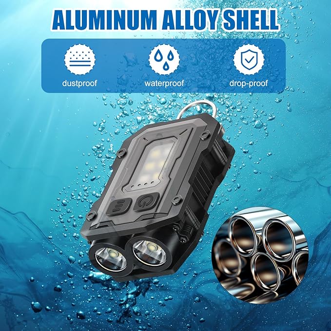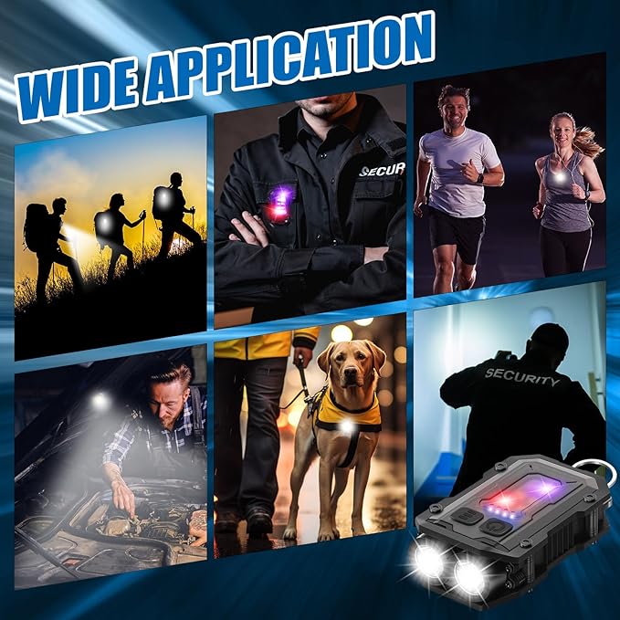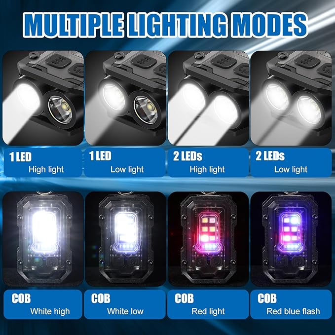 - Reliable Brightness and Flexible Lighting Modes: this mini keychain flashlight features 800 lumens for various lighting needs, and 8 modes: double lights (strong and weak), single light (strong and weak), side lights flashing (click once for strong white light, click twice for weak white light, click three times for red light, and click four times for red and blue flashes), fully meet your varying lighting needs