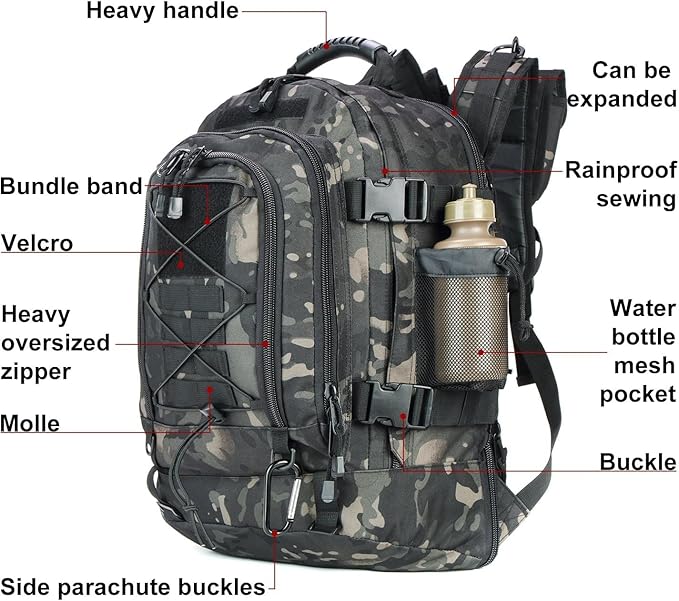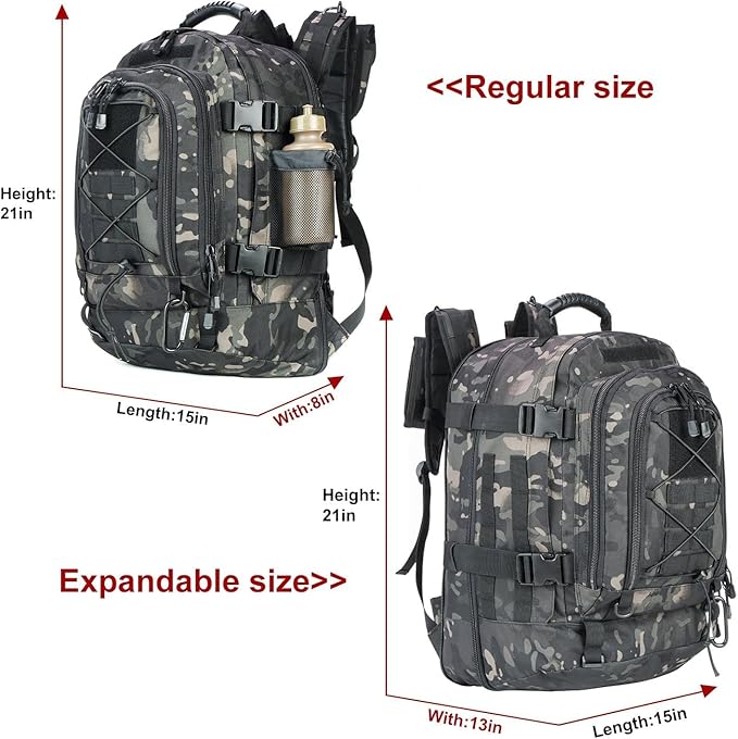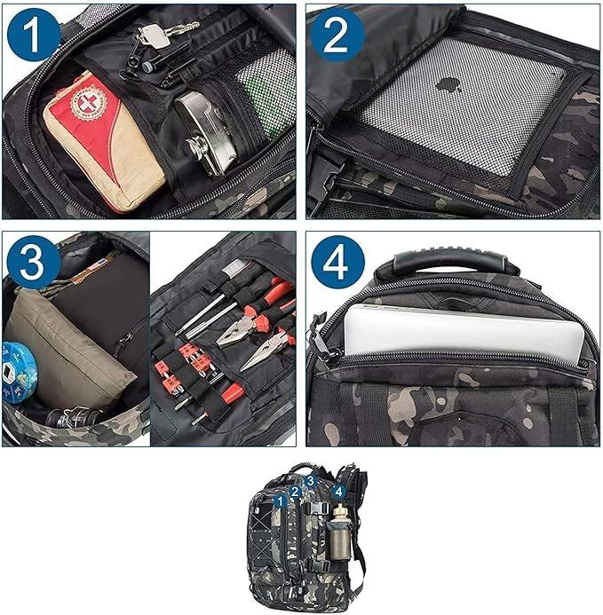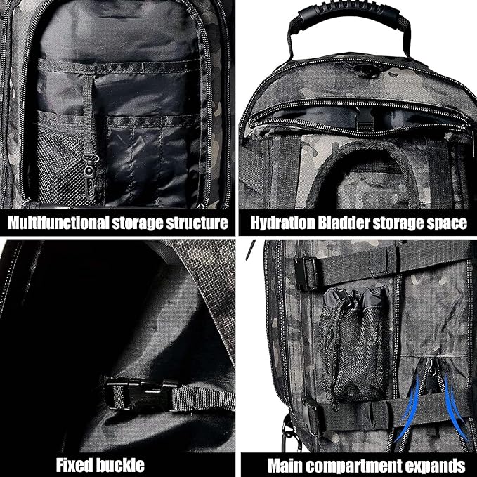 • ✅ Appeal: You can use this amazing backpack every day for travel or a military tactical assault rucksack. It is completely versatile for any backpack situation. You will love having so many different places to put all your stuff to keep it all separated. It even has a hydration compartment.